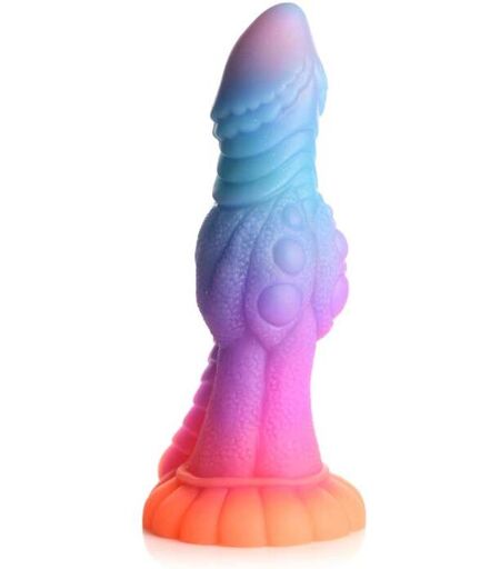 Le gode créature phospho Galactic Cock de la marque Creature Cocks est un objet venu d'ailleurs, invoqué du désir de vous procurer du plaisir. Il entre en vous comme vos orgasmes dans la légende ! Il surgit des étoiles dans le seul but d'envahir votre monde. Lorsqu'il entrera en vous, vous serez instantanément propulsé dans les étoiles. Laissez-le se déployer jusqu'à vous faire chavirer de plaisir humide et intense avec sa forme extraterrestre... La taille extravagante de cet alien vous humidifie l'orifice à chacune de vos envies, jusqu'à ce qu'orgasme s'ensuive ! Attirant et puissant, il vous séduira dans un premier temps par ses couleurs bleues et orangées phosphorescentes tout droit venues de la galaxie la plus lointaine... Puis, lentement, il vous dévoilera toutes ses qualités en vous pénétrant avec sa forme atypique stimulante... La texture aux différents reliefs finira de vous charmer lors de sessions de plaisir passionnées. Et si vous le souhaitez, sa ventouse puissante pourra se fixer sur n'importe quelle surface lisse, propre et sèche pour vous du bien sans que vous ayez besoin de vos mains. Et si vous en voulez encore, il est tout à fait compatible avec un harnais. Matériau : Silicone premium, hypoallergénique et sans phtalates Dimensions : * Longueur totale : 23 cm * Longueur insérable : 19,6 cm * Diamètre max. : 6,6 cm Pour que votre plaisir soit complet, espaceplaisir vous recommande d'utiliser un lubrifiant à base d'eau. Il est important de nettoyer votre sextoy avant et après chaque utilisation. ...