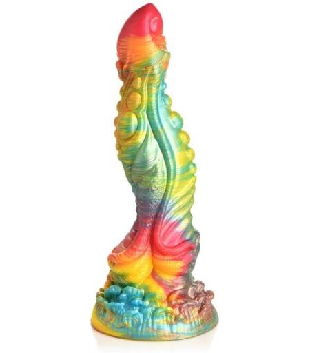 Le gode créature Majestic Merman de la marque Creature Cocks (https://www.espaceplaisir.fr/marques/491-creature-cocks) est une créature légendaire, invoquée du désir de vous procurer du plaisir. Il entre en vous comme vos orgasmes dans la légende ! Majestic Merman surgit hors de l'eau dans le seul but d'immerger en vous. Vous allez éclabousser de désir. Laissez-la se déployer jusqu'à vous faire chavirer de plaisir humide et intense avec sa forme de triton... La taille extravagante de cette intrus océanique vous humidifie l'orifice à chacune de vos envies, jusqu'à ce qu'orgasme s'ensuive ! Attirante et puissante, le gode vous séduira dans un premier temps par ses couleurs arc-en-ciel tout droit venues d'une royaume des océans très excitant... Puis, lentement, elle vous dévoilera toutes ses qualités en vous pénétrant de sa forme atypique stimulante... La texture aux différents reliefs finira de vous charmer lors de sessions de plaisir passionnées. Et si vous le souhaitez, sa ventouse puissante pourra se fixer sur n'importe quelle surface lisse, propre et sèche pour vous faire du bien sans que vous ayez besoin de vos mains. Et si vous en voulez encore, elle est tout à fait compatible avec un harnais. Matériau : Silicone Dimensions : * Longueur totale : 26 cm * Longueur insérable : 22 cm * Diamètre insérable min. : 3,5 cm * Diamètre insérable max. : 7,3 cm Pour que votre plaisir soit complet, espaceplaisir vous recommande d'utiliser un lubrifiant à base d'eau. Il est important de nettoyer votre sextoy avant et après chaque utilisation. ...