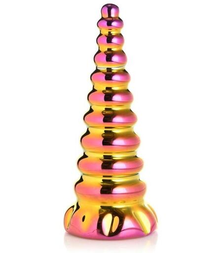 Le dildo en verre Rainbow Twilight de la marque Creature Cocks (https://www.espaceplaisir.fr/marques/491-creature-cocks) est une créature céleste invoquée du désir de vous procurer du plaisir. Il entre en vous comme vos orgasmes dans la légende ! Ce gode surgit hors du mythe dans le seul but de vous emmener avec lui. Laissez-le se déployer jusqu'à vous faire chavirer de plaisir humide et intense... La taille extravagante de cette corne de licorne arc-en-ciel vous humidifie l'orifice à chacune de vos envies, jusqu'à ce qu'orgasme s'ensuive ! Attirant et puissant, ce gode vous séduira dans un premier temps par ses couleurs arc-en-ciel tout droit venues d'un royaume galactique très excitant... Puis, lentement, il vous dévoilera toutes ses qualités en vous pénétrant de sa forme atypique stimulante... La texture aux différents reliefs finira de vous charmer lors de sessions de plaisir passionnées. Sa conception en verre lui permet de conserver les températures, que vous désiriez un jouet bien chaud ou une expérience rafraichissante : laissez-le dans l'eau à la température désirée quelques minutes avant de l'utiliser. De plus, le verre est une matière non-poreuse qui permet à ce jouet d'être compatible avec tous les types de lubrifiants sans risque. Matériau : verre borosilicate très résistant. Dimensions : * Longueur totale : 16 cm * Longueur insérable : 14 cm * Diamètre insérable : de 1,3 cm à 5 cm Pour que votre plaisir soit complet, espaceplaisir vous recommande d'utiliser un lubrifiant à base d'eau. Il est important de nettoyer votre sextoy avant et après chaque utilisation. ...