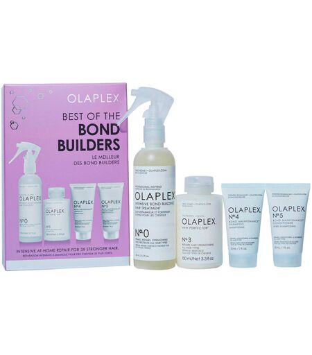 Le kit de 4 pièces contient l'ultime kit de réparation OLAPLEX composé d'OLAPLEX N°.0 Intensive Bond Building Hair Treatment et d'OLAPLEX N°.3 Hair Perfector à utiliser chaque semaine pour réparer tous les dommages causés aux cheveux. De plus, le kit contient deux best-sellers en format voyage - OLAPLEX N°.4 Bond Maintenance Shampoo et OLAPLEX N°.5 Bond Maintenance Conditioner, qui préviennent les frisottis et les dommages et hydratent les cheveux. Répare les cheveux abîmés de l'intérieur. Contrairement aux autres principes actifs, le principe actif original d'OLAPLEX n'agit pas de l'extérieur, mais répare les cheveux de l'intérieur - en reliant durablement les ponts disulfures rompus dans les cheveux. Application : 1. appliquer OLAPLEX N°.0 sur cheveux secs ou essorés.laisser agir 10 minutes. NE PAS RINCER. 2. appliquer OLAPLEX N°.3 sur les cheveux humidifiés avec OLAPLEX N°.0 et laisser agir encore 15 minutes. 3. rincer et laver les cheveux avec OLAPLEX N°4. 4. appliquer OLAPLEX N°5, laisser agir 1 à 3 minutes et rincer. "Seul OLAPLEX® peut faire cela". Un principe actif qui change tout. Avec le principe actif breveté OLAPLEX® "Dimaléate de bis-aminopropyle et de diglycol". ...