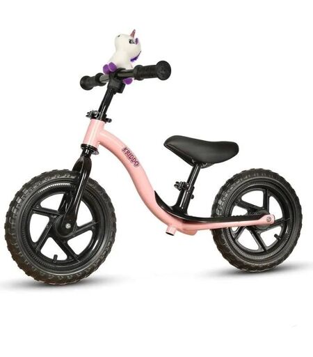 EARLY LEARNING DRAISIAN - A fun way to introduce little ones to the bike. This balance bike for girls and boys allows kids to push, stand and walk outside. Designed with a sturdy frame and balanced toddler friendly design, it is suitable for children from 24 months to 5 years old.ADORABLE PLUSH INCLUDED - Each balance bike comes with a small plush toy that becomes the ideal companion on the road (unicorntyrannosaur).FOOTREST FOR FAST BALANCE LEARNING - Our balance bike has a wide footrest under the saddle, allowing children to put their feet on and learn to lift their feet while gliding, a crucial step to developing self-confidence and balance.EXTRA THICK ALL TERRAIN TIRES We want kids to feel stable and safe when riding on grass or sidewalks. That's why we've added puncture-proof tyres to the front and rear for kids from 24 months to 5 years old.REINFORCED SAFETY LIMITED STEERING - With soft rubber handles, a comfortable PU saddle and carbon steel frame, this balance bike offers limited steering to prevent excessive falls or turns as kids learn to turn. ...