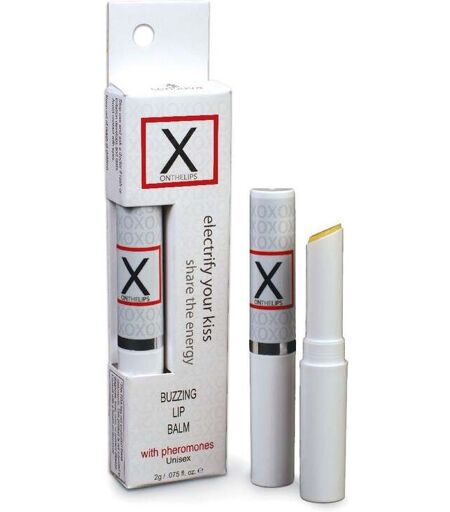 Le Baume à Lèvres aux Phéromones X On The Lips Original de Sensuva, conçu pour hommes et femmes, rendra vos lèvres irrésistibles pour que votre partenaire ne pense plus qu'à une chose, les embrasser ! 100% comestible et infusé aux phéromones, il est idéal pour le sexe oral et hydrate vos lèvres au quotidien. Sa petite taille permet de l'emporter partout pour une utilisation quotidienne et pimenter vos moments en amoureux ! Un petit guide de bisous sexy est aussi fourni, avec des conseils et 40 façons différentes de s'embrasser à tester avec son partenaire pour des moments à deux encore plus coquins ! Ce baume est d'origine 100% naturelle et ne contient pas de menthol, de glycérine ni de parabène. Sans parfum. ...