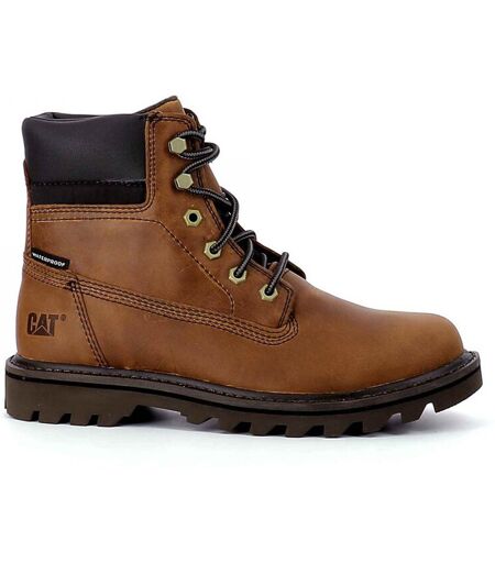 3Suisses : CARACTERISTIQUES : Chaussures de ville CATERPILLAR, collection Deplete Wp, homme- Bottes de travail- Couleur marron- Tige montante en cuir waterproof- Col rembourrée pour plus de confort- Talon : 4 cm- Crochet de laçage rapide- Logo CAT au talon COMPOSITION : Chaussures de ville CATERPILLAR, collection Deplete Wp- Semelle intérieure et doublure en textile- Semelle extérieure en caoutchouc antidérapante DESSUS: 100% CUIR DOUBLURE: 100% TEXTILE PREMIERE: 100% ETHYLENE ACETATE DE VINYL SEMELLE: 100% THERMOPROPYLEN RUBBER Marque: Caterpillar Genre: Homme ...