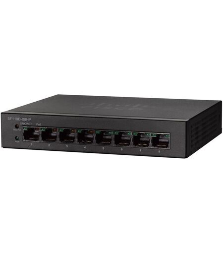 Cisco Systems Cisco Small Business SF110D-08HP - Commutateur - non géré - 4 x 10/100 (PoE) + 4 x 10/100 - de bureau, fixation murale - PoE (32 W) - Tension CC