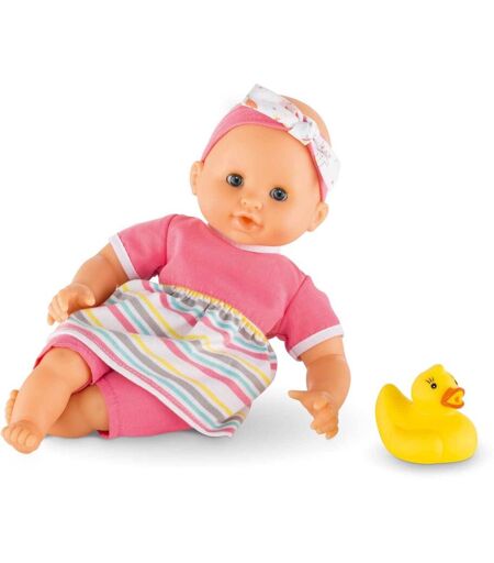 Voici le compagnon de baignade rêvé pour les petites filles à partir de 18 mois ! Ce petit poupon aux yeux dormeurs adore faire trempette, et ce quel que soit l'endroit : l'eau savonneuse de la baignoire, l'eau chlorée de la piscine ou encore l'eau salée de la mer. Les jeux d'eau vont prendre une autre dimension avec cet adorable bébé qui flotte tout seul ! Il est livré avec un petit canard gicleur en plastique jaune pour encore plus de rigolades ! L'attache cousue dans son dos permet de le suspendre pour le faire sécher plus efficacement. Une fois sec, il n'y a plus qu'à le rhabiller pour lui faire des câlins ! Lavable à la main. Dimensions de la boîte : 28 x 23 x 11 cm. Note : retrouvez un bébé bain garçon sous la référence Corolle-DNM45. ...