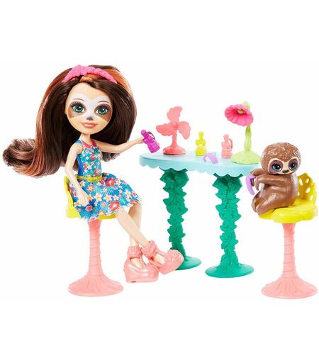 Trouvez un des endroits très spécial et les plus relaxant à Junglewood grâce au Enchantimals Allons Au Spa de Mattel ! Obtenez ce super kit qui est composé de tout ce dont vous cherchez pour passer une journée inoubliable avec Sela Sloth et son amie inséparable, Treebody. Vous pouvez créer votre propre spa et recevoir la visite des Enchantimals les plus amusantes et les plus célèbres du coin. Il est possible de revivre les meilleures aventures et obtenir le plus grand nombre de poupées et de figurines pour renforcez l'amusement! Âge recommandé: + 4 ans. Le kit est composé de: 1 poupée Sela Sloth, 1 figurine Treebody, 2 tabourets, 1 table de spa et plusieurs accessoires de jeux. Dimensions approximatives de la poupée: 15 cm de hauteur, 4,5 cm de largeur et 3 cm de profondeur. Dimensions approximatives de la figurine: 4 cm de hauteur, 2,5 cm de largeur et 2,5 cm de profondeur. Dimensions approximatives de la table du spa: 8 cm de hauteur, 8,5 cm de largeur et 4 cm de profondeur. ...