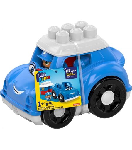 Véhicule accompagné d'une petite figurine sur laquelle est imprimé un visage souriant. 5 briques incluses pour initier les petits a la construction. ...