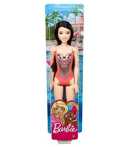 Jolie Barbie ethnique avec son maillot de bain aux motifs azteque. Longue chelure lisse noir .. A partir de 3 ans. Le bustier est moulée à la barbie. ...