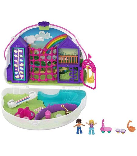 Porte-monnai Portable Rainbow Dream de Mattel Polly Pocket. Le porte-monnai que vous pouvez emporter partout pour vivre des aventures passionnantes avec Polly et Shani dans le terrain de jeu, montrez votre agilité avec le skatepark, grimpez sur les cordes ou utilisez la balançoire amovible, faites tourner le carrousel, montez et descendez de la balançoire ou promenez-vous avec votre animal de compagnie dans le parc canin et reposez-vous sur la couverture de pique-nique. Vous pouvez imaginer les histoires que vous pouvez représenter, montrez vos compétences créatives tout en vous amusant. Découvrez beaucoup plus de stations de jeux de Mattel Polly Pocket sur ce site Web sous réserve de disponibilité. Âge recommandé: à partir de 4 ans. Le kit est composé de: un sac pour le transporter, deux figurines et des accessoires. Dimensions approximatives de chaque figurine: 2,6 cm de haut, 2,1 cm de large et 0,8 cm de profondeur. Dimensions approximatives du sac ouvert: 3 cm de haut, 17,5 cm de large et 27 cm de profondeur. ...