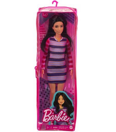 Découvrez les dernières tendances de la mode avec une poupée incomparable ! Profitez de moments uniques avec la nouvelle et élégante Barbie Fashionista Robe Rayée à Manches Longues ! Découvrez cette superbe nouvelle poupée articulée au look très spécial, appréciez le monde de la mode avec cette amusante poupée Barbie de la collection Fashionista. Une poupée prête à explorer tous les ensembles de jeux, les véhicules et les jouets spéciaux pour Barbie. Style, plaisir et apprentissage grâce à la poupée la plus célèbre du monde ! Âge recommandé : 3 ans et plus. Inclus : 1 sac en vinyle avec fermeture à glissière et 1 poupée Barbie avec de longs cheveux noirs, un collier en or, une robe à manches longues et 1 paire de baskets oranges. Dimensions approximatives de la poupée : 28 cm de hauteur, 9 cm de largeur, et 3,5 cm de profondeur. Dimensions approximatives de la mallette de poupée : 32 cm de hauteur, 10 cm de largeur et 5 cm de profondeur. ...