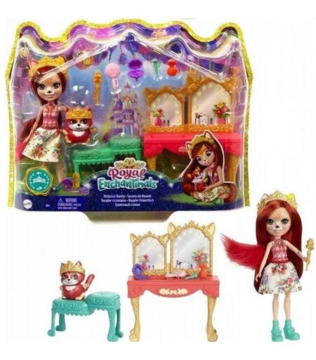 Mattel Enchantimals Royals Coffret Coiffeuse Avec Mini-Poupée Fabrina Renard, Figurine Animale Frisk Et 9 Accessoires