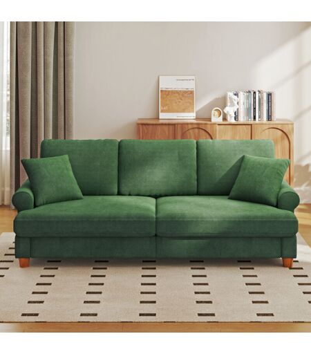 Yoleo - Canapé 3 places Moderne tissu en chenille 220 x 74 x 86cm,Canapé droit rembourrés avec coussins pour salon,Design moderne,Vert