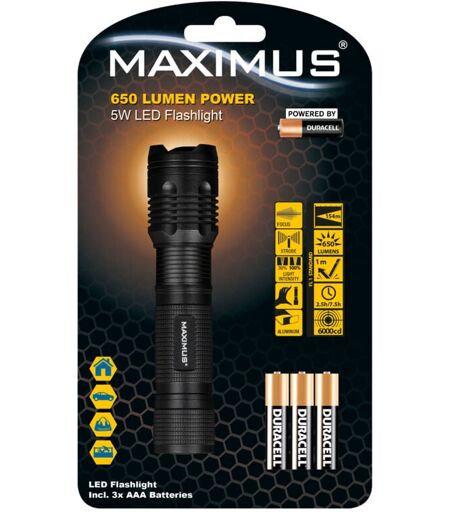 Lampe de poche LED MAXIMUS 5W 650lm IPX4 3XAAA alkline DURACELL ...