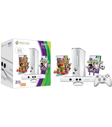 Microsoft Pack Xbox 360 4 Go + Kinect Blanche Edition Limitée + Kinect Sports + Adventures