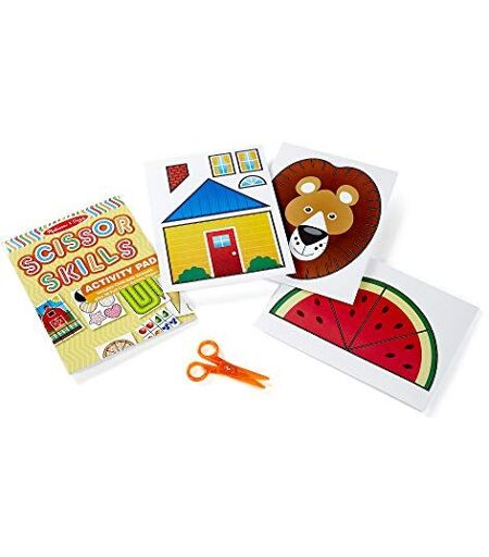 Kids love to cut with scissors¿as you can see by the trail of scraps often left in their wake! This creative and practical activity pad gives an engaging, creative direction to scissor work, meaning more concentration and less mess. Organized from simpler to more complex, 20 different paper cutting projects (with complete supplies included right in the pages of the book) allow children to practice slightly different skills and techniques and produce 20 distinct crafts, games, and activities that offer them a creative focus and a sense of accomplishment. Plastic safety scissors are included, which naturally encourage proper form and are safe for preschoolers¿but any pair of scissors can be used to complete the paper cutting projects. The included safety scissors are child safe, easy to use, and can be used by right or left handed kids. Our scissor skills activity set for kids assists in the development of fine motor skills and cognitive skills. The inclusion of mazes, puzzles, animal art, sequencing activities, and much more stimulates creativity. This child safe scissors activity set is a great gift for kids ages 4 to 7. Add the Melissa & Doug Reusable Sticker Pad ¿ Habitats Set to round out the hands on play experience and give kids an engaging option for screen free fun. For more than 30 years, Melissa & Doug has created beautifully designed imagination and creativity sparking products that NBc News called ¿the gold standard in early childhood play.¿ We design every toy to the highest quality standards, and to nurture minds and hearts. If your child isn¿t inspired, give us a call and well make it right. Our phone number is on every product! ...