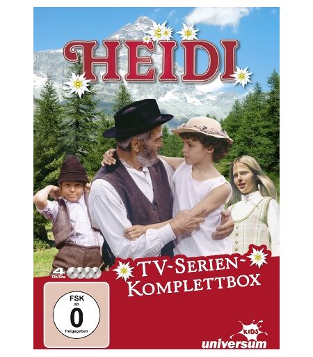 AspectRatio : 1.33 : 1, AudienceRating : Freigegeben ohne Altersbeschränkung, Brand : VARIOUS, Binding : DVD, Label : Universum Film GmbH, Publisher : Universum Film GmbH, NumberOfDiscs : 4, RegionCode : 2, NumberOfItems : 4, Format : Dolby, medium : DVD, publicationDate : 2012-03-01, releaseDate : 2012-03-02, runningTime : 676 minutes, theatricalReleaseDate : 1978-01-01, writers : Johanna Spyri, actors : Katia Polletin, Katharina Bohm, Stefan Arpagaus, directors : Tony Flaadt, Joachim Hess, languages : german ...