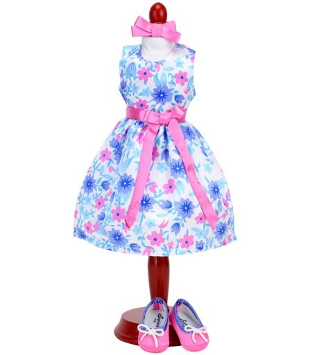 Sophia's by Teamson Kids 'Satin Floral Tengit est un ensemble joyeux et habillé pour des poupées de 14,5 pouces. La robe de style swing à imprimé floral sans manches propose une ceinture en satin rose avec un arc. Les chaussures de fête roses comprennent une garniture violette bleue et un détail blanc, tandis qu'un bandeau en satin rose complète ce look d'été sophistiqué. Cet ensemble est conçu pour des poupées de mode de 14,5 pouces, notamment des poupées American Girl Wellie Wisher, des poupées Glitter Girls, Hearts for Hearts Dolls, Adora Be Bright Dolls, et plus encore. (Poupées non incluses.) Teamson est une marque Global Lifestyle Home Designs apportant de la joie dans chaque maison à travers de belles pièces de qualité conçues pour une vie quotidienne élégamment confortable. Nos marques pour enfants de Teamson donnent un vol à des meubles amusants, découvertes et apprenants à travers des meubles magnifiquement conçus, sûrs et à droite des tendances et des jouets pour les enfants avec un esprit de curiosité et d'aventure. Sophia's by Teamson Kids donne vie à l'amitié magique entre un enfant et des poupées à travers des poupées magnifiquement faites, des meubles de poupées et des accessoires de poupées. ...