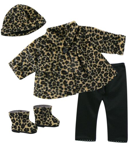 Donnez à votre tout-petit des vêtements amusants pour habiller sa poupée avec le manteau, le chapeau, les leggings et les bottes de poupée Sophia's by Teamson Kids. Cet ensemble de vêtements de poupée 4 pièces comprend un manteau en fausse fourrure à imprimé léopard, un chapeau assorti, des leggings noirs et des chaussures de poupée pour une tenue confortable et élégante que votre petite poupée adorera. Ces accessoires de poupée tendance encouragent votre enfant à utiliser son imagination tout en jouant à faire semblant. De plus, la tenue complète de poupée de style décontracté permet à votre tout-petit d'accessoiriser sa poupée pour lui ressembler. Conçu pour les poupées jusqu'à 18 pouces, cet ensemble est compatible avec les poupées Sophia, les poupées Our Generation, les poupées Melissa & Doug, les bébés Chad Valley, les poupées Baby Born et Baby Annabell, les poupées Designafriend, les poupées Luvabella, les poupées Tiny Treasures, les poupées Molly Dolly, Baby Alive, Dolls World Dolls, Bibi Dolls et bien d'autres ! Poupée et chaussures non incluses. Teamson est une marque mondiale de conceptions de maison lifestyle apportant de la joie dans chaque maison grâce à de belles pièces de qualité conçues pour une vie quotidienne confortable et élégante. Nos marques Teamson Kids donnent le vol au plaisir, à la découverte et à l'apprentissage grâce à des meubles et des jouets magnifiquement conçus, sûrs et tendance pour les enfants avec un esprit de curiosité et d'aventure. ENSEMBLE DE VÊTEMENTS DE POUPÉE DE 18 POUCES 4 PIÈCES : Une tenue de poupée complète dans un style confortable permet à votre tout-petit d'accessoiriser sa poupée pour qu'elle ressemble à elle-même. Avec des matériaux doux et une fermeture velcro pour une utilisation facile. Mélangez et assortissez avec les poupées, les vêtements et les chaussures de Sophia. COMPREND : Une veste de poupée à imprimé animalier en fausse fourrure avec des leggings noirs. Complet avec accessoires de poupée ; un chapeau imprimé léopard et des chaussures de poupée pour une tenue élégante et colorée. Poupées vendues séparément. Idéal pour les idées cadeaux. JEU DE RÔLE : Vos tout-petits peuvent jouer le rôle de maman ou de papa en habillant leurs poupées selon leurs préférences pour laisser libre cours à leur imagination et à leur créativité. Les vêtements de poupées permettent à votre tout-petit d'accessoiriser sa poupée pour lui ressembler. COMPATIBILITÉ : Convient aux poupées de 16 à 18 pouces. DIMENSIONS : cet ensemble de vêtements de poupée mesure L22,2 x l18,4 x H7 cm et pèse 0,1 kg. Recommandé à partir de 3 ans. ...