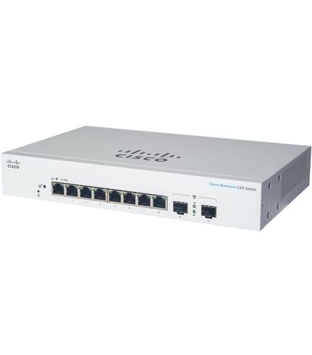 Cisco Systems Cisco Business 220 Series CBS220-8FP-E-2G - Commutateur - intelligent - 8 x 10/100/1000 (PoE+) + 2 x Gigabit SFP (liaison montante) - Montable sur rack - PoE+ (130 W)
