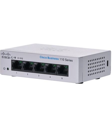 Cisco Systems Cisco Business 110 Series 110-5T-D - Commutateur - non géré - 5 x 10/100/1000 - de bureau, Montable sur rack, fixation murale - Tension CC