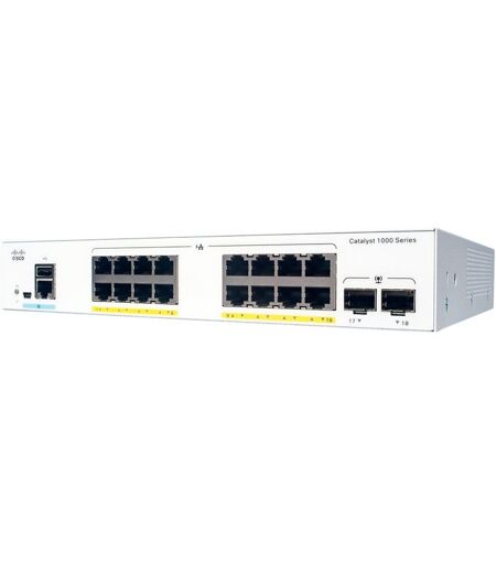 Cisco Systems Cisco Catalyst 1000-16FP-2G-L - Commutateur - Géré - 16 x 10/100/1000 (PoE+) + 2 x Gigabit SFP (liaison montante) - Montable sur rack - PoE+ (240 W)