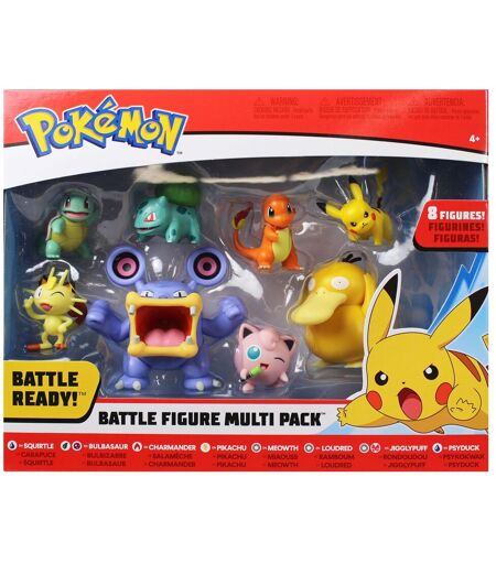 Pack de 8 figurines en PVC, taille env. 5-7 cm, en emballage boîte-fenêtre.Contenu:- 1x Bulbizarre- 1x Carapuce- 1x Salamèche- 1x Pikachu- 1x Miaouss- 1x Rondoudou- 1x Ramboum- 1x Psykokwak ...