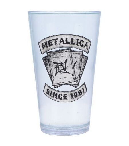 Ayez toujours sous les yeux votre ¿uvre d'art Metallica préférée avec ce verre Metallica Since 1981 sous licence officielle. Ce verre présente les cartes avec le logo Metallica et "Since 1981". Tous nos verres sont lavés à la main uniquement afin de garantir un état optimal. Ce verre Metallica Since 1981 sera le complément parfait de toute collection de Metallica ou de Heavy Metal. ...