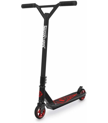 Le mod?le d'entr?e de gamme avec un excellent rapport qualit?-prix pour les enfants dans la sc?ne des trucs et des cascades. Pont en aluminium tremp? avec bande adh?sive graphique, guidon en aluminium, fourche en acier, frein. Roulettes 100 mm, roulements ? billes ABEC 5. Couleur rouge / blanc. Pas pour les adolescents. Pas pour les sauts bruts, etc.. Scooter stunt de haute qualit? avec un excellent ?quipement.. Platine en aluminium l?ger tremp? (6061) avec bande adh?sive, guidon en aluminium (6061), triple collier, jeu de direction Neco et frein de performance.. Equip? de roues PU 83-A sur jante en aluminium de haute qualit?.. Roulement ? billes de haute qualit? ABEC-7.. max. Charge: 80 kg ...