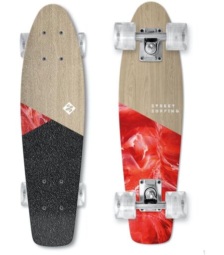 Les Beach board avec plateau bois sont un embl?me des ann?es 70. De la m?me taille que les Beach board en plastique Original 22"ces mini-cruisers sont vraiment traditionnel et r?tro. Parfait et compact pour faire du street, skate park ou pour aller ? l'?cole!. Plateau 7 plis ?rable 22.5"x6.3". Truck alu bossel? 3.25". Empattement 11.2". Roue(s) transparentes 60x45mm. Roulements abec 7. ? partir de 5 ans ...