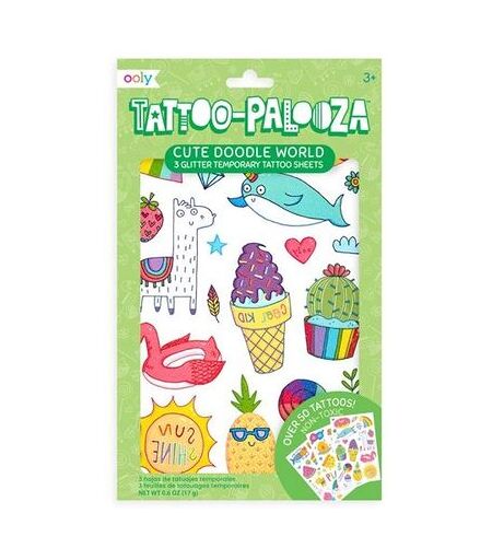 Ooly Tattoo Palooza Temporary Tattoosza Cute Doodle World (en anglais)3 feuilles avec plus de 50 tatouages par paquet. Format de la feuille 5.2" x 8.2" Cute Doodle World . ...