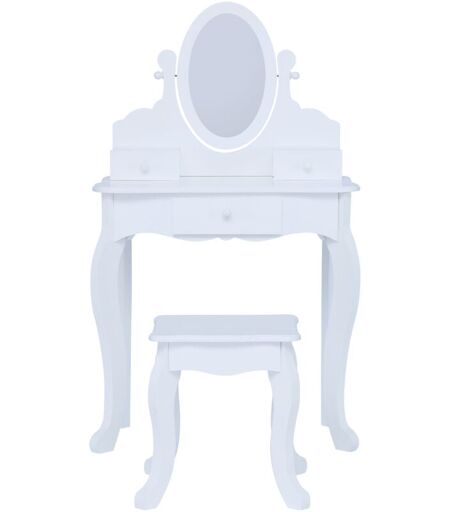 Teamson Kids - Coiffeuse en Bois Little Princess Rapunzel avec Miroir, Tiroirs et Tabouret, Blanche