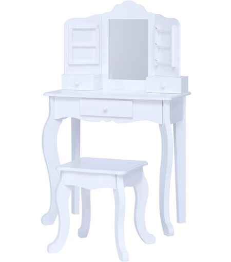 Teamson Kids - Coiffeuse enfant table de maquillage avec miroir et tabouret blanche Fantasy Fields TD-13366D