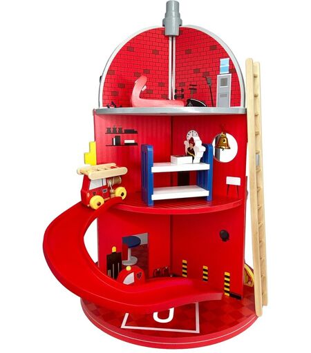 Caserne de pompiers en forme de borne d'incendie à 3 étages de Teamson Kids.Ce poste de pompiers en forme de borne d'incendie à 3 étages avec une base rotative dispose d'une barre de pompier, d'une échelle, et d'un toboggan pour des sauvetages rapides.Inclut 25 pièces sur le thème des pompiers, comme une salle de sport, une salle de bain, un lit superposé, des meubles de salon confortables, ainsi qu'un hélicoptère, un camion de pompiers, et une voiture pour les interventions d'urgence.Les figurines de pompiers à double face permettent à votre enfant de passer du devoir de pompier au temps de détente à la caserne avec le dalmatien mascotte de la station.Pièces robustes détaillées avec des illustrations colorées. ...
