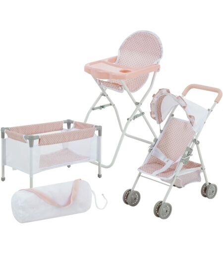 Teamson Kids - Olivia's Little World Station de Nurserie 3pcs Lit Bebe Chaise Haute et Poussette Rose Gris
