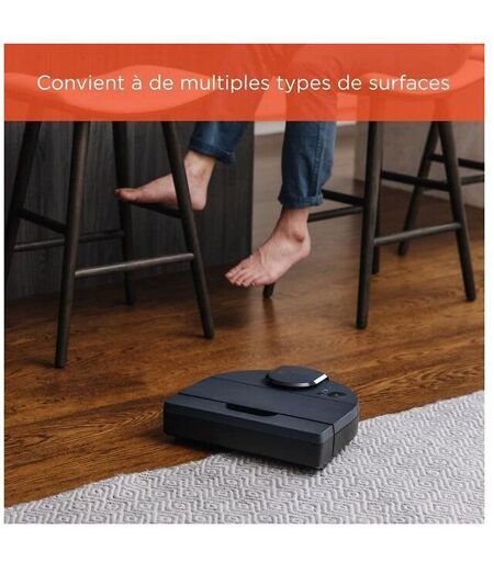 Un cercle ne peut pas nettoyer un coin carré. C'est pourquoi Neato a lancé la forme en D il y a plus de 15 ans. Cette forme permet d'avoir une brosse à l'avant de l'aspirateur, plutôt qu'entre les roues comme les robots ronds. Résultat ? La brosse la plus large et le bac à poussière le plus grand sur le marché des aspirateurs robots, pour atteindre tous les coins et les bords pour un nettoyage complet. Outre une autonomie de 100 min* et un filtre haute performance qui capture jusqu'à 99 %* des allergènes et des fines particules, le Neato® D8 est doté d'un mode Eco pour nettoyage régulier et d'un mode Turbo plus puissant pour les endroits qui nécessitent un nettoyage plus intensif. Les robots intelligents Neato utilisent la technologie LaserSmart?? par LIDAR pour cartographier et parcourir la maison avec grande précision, même dans le noir (et sous les meubles). Neato utilise des lasers pour se repérer dans l'espace ainsi, si sa batterie est faible, il peut interrompre le nettoyage, retourner à la base pour se recharger, puis revenir à l'endroit exact où il s'est arrêté pour terminer son nettoyage. Les escaliers vous inquiètent ? Aucune raison de vous inquiéter avec Neato. La technologie LaserSmart? permet à votre robot d'apprendre ce dont il doit s'éloigner (comme les escaliers) lorsque vous terminez votre première carte, et continue à apprendre à mesure de l'utilisation. Pas besoin de le surveiller : laissez-le travailler, sans inquiétude. Avec l'app MyNeato, lancez-le en quelques minutes grâce à sa fonction Bluetooth pour une configuration simple et rapide, et créez des plans d'étage, zone d'interdiction d'accès virtuelles. Une expérience qui fait de Neato le choix évident en matière de propreté.*testée dans des laboratoires internes ...