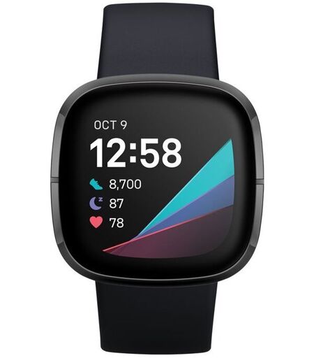 Fitbit Sense - Acier inoxydable graphite - Montre connectée avec bracelet - silicone - carbone - taille du bracelet : S/L - Wi-Fi, NFC, Bluetooth