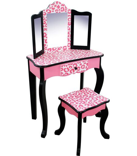 Offrez à votre fille un endroit idéal pour qu?elle puisse se faire belle et faites-lui plaisir avec un meuble à la mode avec cette coiffeuse enfant Fashion Prints de Fantasy Fields accompagnée de son tabouret aux imprimés léopard très tendance. Les motifs léopard en rose vif décorent magnifiquement cette coiffeuse en bois pour enfant et les finitions noires se marient parfaitement au style. Le miroir est très utile, c?est un excellent accessoire pour que les enfants puissent se regarder et s?assurer qu?ils seront les plus élégants à la fête ! Dimensions - Coiffeuse enfant (L) 59.70cm x (l) 29.20cm x (H) 97.80cm / Tabouret (L) 27.30cm x (l) 25.40cm x (H) 36.80cm. La coiffeuse comprend : - TROIS MIROIRS INCASSABLES : Regardez votre tout petit s'admirer dans le miroir pendant qu'il se prépare. Les miroirs sont fabriqués à partir de verre acrylique incassable de 3mm qui offrent un meilleur reflet, plus résistant et sécurisant pour votre enfant si quelque chose est projeté dans le verre. - GRAND ESPACE DE RANGEMENT : Un tiroir central coulissant avec poignée pour ranger des petits trésors et accessoires indispensable. - FABRICATION AVEC UN BOIS DE QUALITE : La coiffeuse est fabriquée en panneaux MDF éco-responsable de qualité pour lui donner une structure solide et durable, ce qui signifie qu'elle ne sera pas facilement renversée, est très sûr pour vos enfants. Elle peut aussi être utilisé autour des animaux domestiques. - MONTAGE ET ENTRETIEN FACILE : Le montage par un adulte est nécessaire. Coiffeuse recommandée aux enfants de 3 ans et plus. - Cet ensemble coiffeuse comprend le meuble coiffeuse avec son tabouret. C'est un ensemble idéal pour une chambre de fille. - DIMENSIONS : Coiffeuse (L) 59.70cm x (l) 29.20cm x (H) 97.80cm / Tabouret (L) 27.30cm x (l) 25.40cm x (H) 36.80cm. Offrez à vos divas des meubles aussi unique que leurs personnalités avec la collection Fashion Prints. Avec ces nouveaux meubles enfant aux imprimés et couleurs exclusifs vos filles sont sûres de se faire remarquer. Offrez-leurs dès aujourd?hui du mobilier qui les fassent pousser des cris de joie et leurs permettent d?être aussi créatives que leurs imaginations ! Notre histoire commence avec un père qui s'attendait à plus des jouets de ses enfants et avait le sentiment qu?une construction de qualité et un prix abordable ne devaient pas être exclusif. Notre passion est de faire sourire nos petits et stimuler la créativité de tous les enfants en proposant des jeux ludiques afin qu'ils puissent découvrir et explorer le monde à travers le jeu. Nos produits répondent entièrement aux normes de sécurité et de qualité pour s'assurer que votre enfant puisse jouer en toute sécurité et profiter pleinement du produit. ...