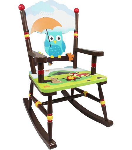 Asseyez-vous et détendez-vous sur le robuste fauteuil à bascule en bois Bois Enchanté, conçu pour les enfants les plus énervés. Des animaux des bois en couleur ornent l'assise du fauteuil, et une chouette souriante et lumineuse orne le dossier. Plongez dans vos pensées en vous balançant sur ce fauteuil de qualité dès aujourd'hui ! Motif peint et sculpté à la main par Teamson Design Corp. Les peintures à l'eau écologiques et non toxiques n'ont presque pas d'odeur et sont sans danger pour vos enfants. L'ajout parfait à une chambre d'enfant ou une salle de jeux. Limite de poids : 45 kg. Instructions d'assemblage détaillées fournies. Idéal pour les enfants de 3 ans et plus. ...
