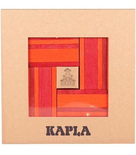 Kapla - Coffret couleur rouge / orange Contenu du coffret : 20 planchettes rouge, 20 planchettes orange, 1 livre d'art comportant de nombreux modèles à réaliser. Tom van der Bruggen est le créateur des planchettes en bois KAPLA. Il cherchait à réaliser une maquette du château de l'Aveyron qu'il souhaitait restaurer et les cubes lui paraissaient peu satisfaisants. Il a eu l'idée de ces planchettes en bois de taille identique, fondée sur la progression des chiffres impairs : 1,3,5. Trois épaisseurs pour une largeur et cinq largeurs pour une longueur. Ce volume, à mi-chemin entre la brique et la pierre, la planche et la poutre, permet des réalisations ayant la précision d'une oeuvre d'art et la stabilité de la pierre. Il a baptisé ses planchettes KAPLA, pour "Planchettes de lutin" en hollandais. Avec les planchettes KAPLA, les enfants comme les adultes peuvent désormais bâtir et créer toutes sortes d'architectures, d'animaux, de créatures extraordinaires... Kapla, la planchette magique de construction pour petits et grands, en pin des Landes ! ...