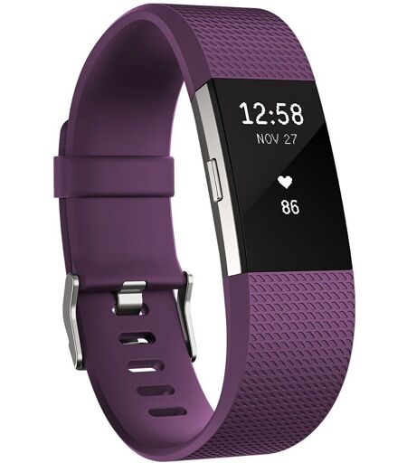 Fitbit Charge 2 - Argent - Tracker d'activités avec bracelet - lie-de-vin - taille du bracelet : L - monochrome - Bluetooth - 35 g - argent