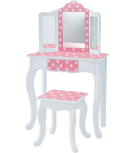 Teamson Kids Coiffeuse Enfant Gisele Polka Dot avec Tabouret, Design Élégant Blanc/Rose