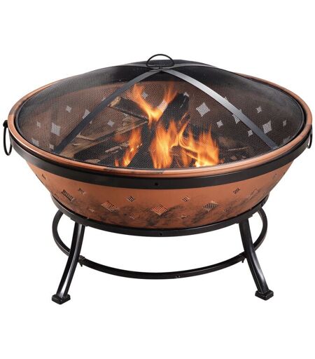 Braséro de jardin à bois chauffage extérieur acier foyer rond 89 cm couvercle de protection tisonnier cuivré Teamson Home FP35