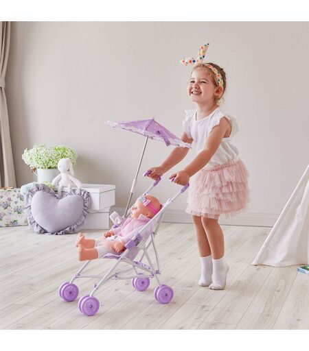 Vos enfants pourront balader leurs poupées avec style dans cette nouvelle poussette chic et confortable. Cette poussette de poupée lavande avec son parapluie permet de les transporter vers leurs lieux préférés dans un confort et style optimales tout en étant protégées des rayons nocifs du soleil et de la pluie ! La poussette est de couleur lavande/violet avec des étoiles blanches et jaunes. Elle est facile à pousser et solide pour résister à de longues heures de jeux. Offrez cette poussette à votre enfant aujourd'hui et rendez les temps de jeux plus actifs ! (L) 49 cm x (l) 27 cm x (H) 53 cm. - Convient aux poupées de 40 à 45 cm. Facile à nettoyer, le tissu est couleur lavable / violine /violette - Poussette de poupée pliable avec parapluie. - Le châssis est en métal et toile avec ceinture en polyester - Grâce au parapluie lavande vos enfants peuvent transporter leurs poupées dans leurs endroits préférés avec un confort et style optimales tout en les protégeant de la pluie et des rayons nocifs du soleil ! - Les étoiles scintillantes éclairent toujours le chemin vers les meilleurs et plus heureux moments. Cette poussette s?assortie avec les meubles de poupées d?Olivia?s Little World de la même collection. - Poussette recommandée aux enfants de 3 ans et plus. La poupée et le poupon ne sont pas fournis. ...