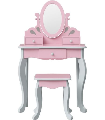 Teamson Kids - Coiffeuse en Bois Rapunzel avec Tabouret pour Enfants, Rose et Gris