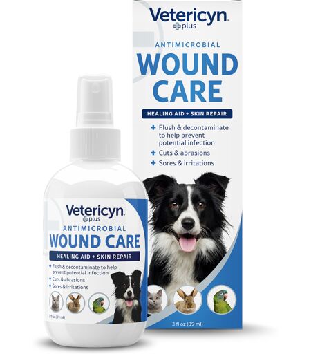 Pour soigner votre animal, ce spray efficace et naturel est indispensable dans votre trousse de secours ! Sa solution hypochlorite se pulvérise sur les plaies et les blessures pour accélérer le processus de cicatrisation. Le spray Vetericyn Plus... ...