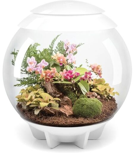 Le BiOrb AIR 46147 est un terrarium de 60 litres entièrement automatisé qui crée le microclimat parfait pour la culture de plantes tropicales. Ce microclimat reproduit les conditions naturelles du couvert forestier tropical, ce qui le rend adapté aux plantes qui nécessitent des niveaux d'humidité élevés. Vous pouvez désormais ressentir les bienfaits de la découverte du monde naturel à l’intérieur. Libre choix de l'emplacement, le biOrb AIR ne requiert pas de lumière naturelle. L'éclairage biOrb Moonlight simule le lever du soleil, la lumière du jour, le coucher du soleil et la nuit tout au long d'un cycle de 24 heures. Type de produit : Jardin d'intérieur. Classe énergétique : G. Capacité : 60 litres. Matière : Acrylique transparent très résistant. Adapté aux plantes sensibles et exotiques. Inclus : terrarium et socle, module d'éclairage et de brumisation, compost de coco, plateau de plantation, cartouche de filtre à charbon, 2 bouteilles de 500 ml d'HumidiMist, transformateur 24 V, ...