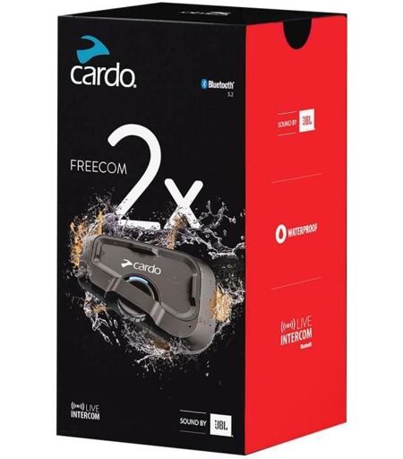 CARDO - Intercom moto - FREECOM2 X SOLO 1 Intercom - Portée 800 m - Ecouteurs 40 mm JBL - Connectivité universelle - Mise a jour sans fil - Autonomie 13 H ...