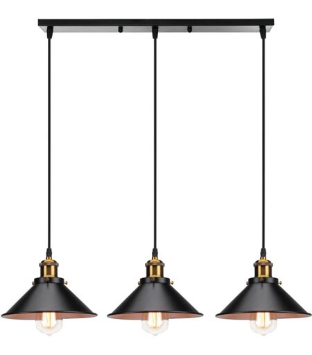 NORCKS Luminaire De Style Rétro Ø22CM Lustre Vintage à 3 Lumières Suspension Noir Plafonnier En Fer En Métal Pour Éclairage De Cuisine De Couloir De Bar