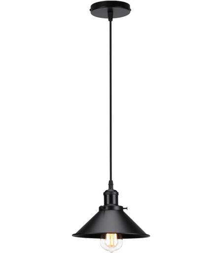 NORCKS Lampes à Suspension Rétro Lustre Vintage 220MM E27 (Noir) Plafonnier Industriel Abat-Jour En Métal Pour Loft Restaurant Café Bar