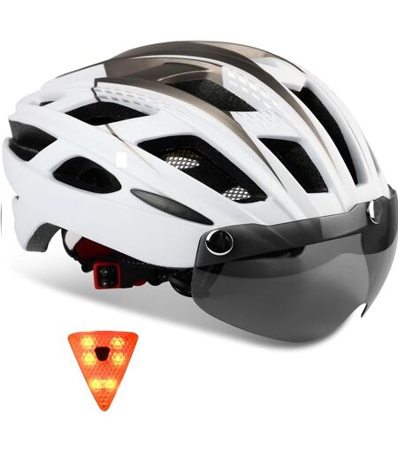 ¿¿Protection professionnelle, Sauver Votre Vie¿Grâce à la technologie supérieure Integral Molded, le casque de vélo pour hommes et femmes est composé d'une coque PC haute densité, solide et durable et d'une mousse EPS pour répondre ou dépasser les normes de sécurité actuelles, ce qui aide à absorber l'impact et à protéger la tête lors d'un accident. ¿¿Lumière LED pour Casque¿Le casque velo KINGLEAD MTB a 3 modes d'éclairage - stable, clignotant lent et clignotant rapide, Une batterie de rechange est également incluse.Il peut aider à avertir les véhicules et aider les autres conducteurs derrière vous à identifier clairement votre direction, vous rendant plus sûr et plus lumineux lorsque vous roulez la nuit. ¿¿Visière Magnétique Pliante¿Le casque velo homme avec visière solaire avec 3 aimants puissants protège non seulement vos yeux du vent et du sable, mais bloque également la forte lumière du soleil avec une protection UV400. Il n'interfère pas avec l'utilisation de lunettes de protection. ¿¿Casque Velo Réglable¿Le casque velo femme amélioré permet de relever et d'abaisser les lunettes. Le bouton de réglage à 360° et les sangles latérales réglables peuvent aider à ajuster la hauteur et la circonférence. Convient à 22,44''-24,41'' (57cm-62cm) et répond aux besoins de la plupart des hommes et des femmes.(Un sac à dos supplémentaire est inclus pour ranger le casque velo route lorsqu'il n'est pas utilisé). ¿¿Casque Velo Super Confortable¿Le casque velo avec visiere fonctionnel est doté d'évents aérodynamiques spéciaux 28 respirants pour réduire efficacement la traînée et la transpiration. Pesant seulement 310 g (0,68 lb), vous ne vous sentirez pas lourd lorsque vous le portez. Le rembourrage intérieur souple, la mentonnière et les coussinets vous garantissent un confort maximal. Attention:Risque d'étouffement ou de suffocation avec les ballons cassés ou non gonflés, à garder hors de portée des enfants..La livraison depuis la France est prévue dans 5 jours ouvrés, n'hésitez pas à passer votre commande ...